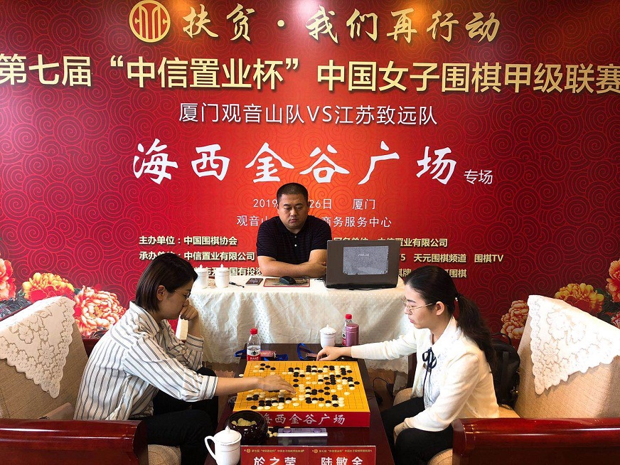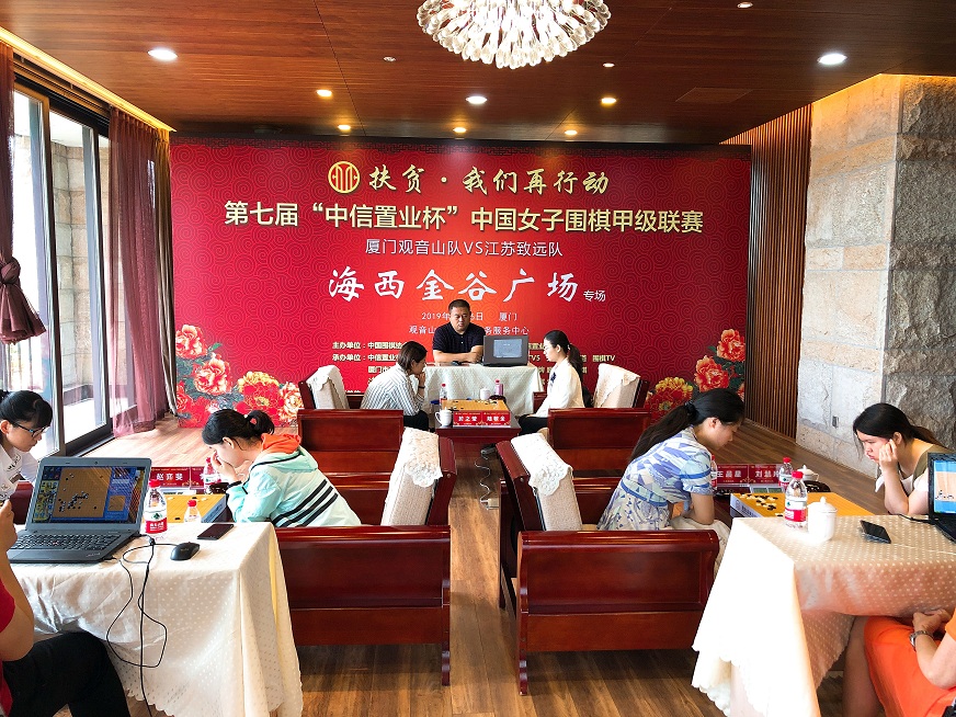都說(shuō)魚(yú)離不開(kāi)水,魚(yú)兒上了陸,結果一望便知。這不,上周末,美麗鷺島就又上演了一場(chǎng)魚(yú)兒登陸的好戲。5月26日,第7屆中信置業(yè)杯中國女子圍棋甲級聯(lián)賽第3輪(廈門(mén)觀(guān)音山隊主場(chǎng) VS 江蘇致遠隊)“海西金谷廣場(chǎng)”專(zhuān)場(chǎng)在位于廈門(mén)觀(guān)音山海岸的觀(guān)音山總部企業(yè)商務(wù)服務(wù)中心戰罷。廈門(mén)觀(guān)音山隊家門(mén)口以2-1鎖定勝局,成功挑落女子圍甲六冠王——衛冕冠軍江蘇隊。