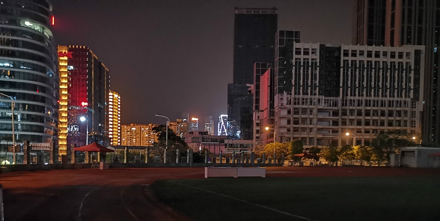 由于本次比賽在學(xué)校的操場(chǎng)舉辦,所以工作人員只能等到學(xué)校清場(chǎng)后才能進(jìn)來(lái)布場(chǎng)。觀(guān)音山片區美輪美奐的夜景為乏味又冗長(cháng)的工作現場(chǎng)添上了一些樂(lè )趣。