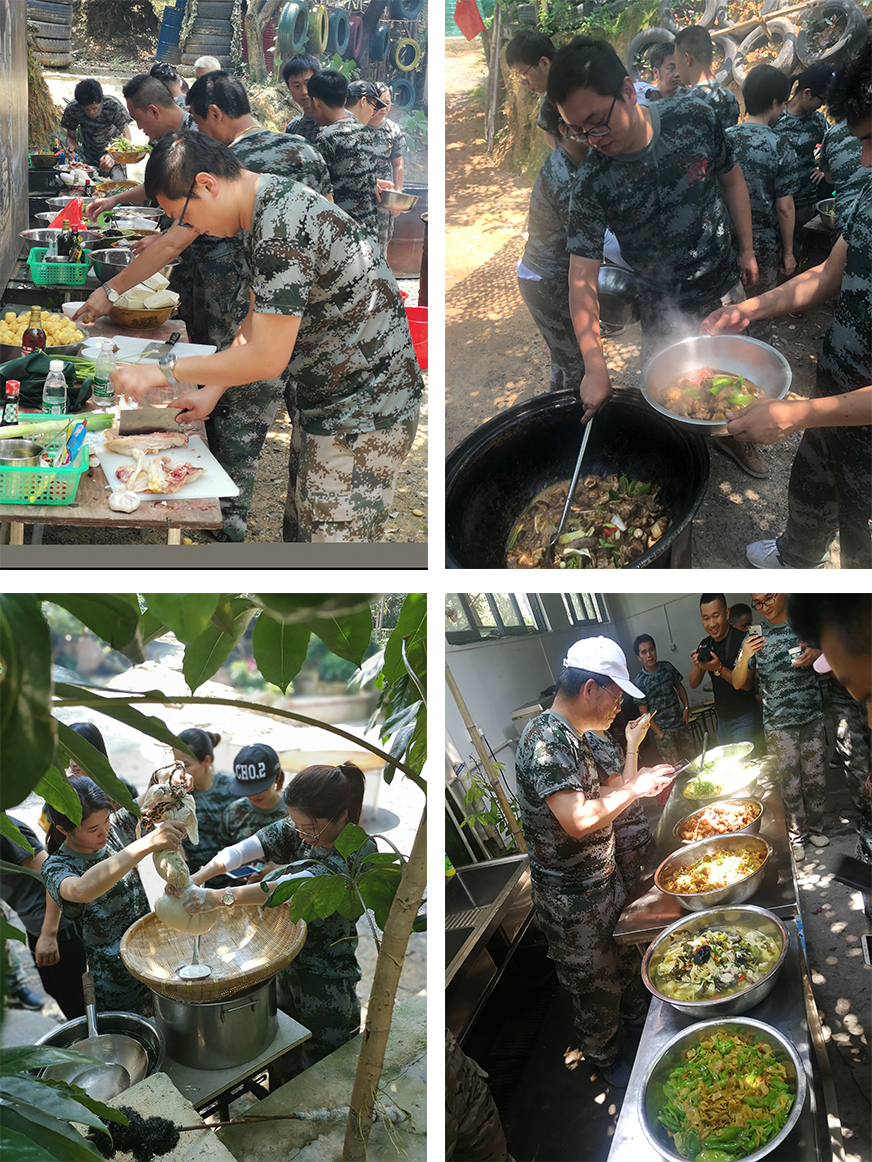 伴隨著(zhù)朝陽(yáng)的沐浴,教練迅速把60名人員分成四個(gè)小隊,換服裝,分組編隊,每組選出隊長(cháng)——舉隊旗、起隊名、定隊號、畫(huà)LOGO等等,接著(zhù)開(kāi)始破冰環(huán)節,讓大家打破隔閡,達成共識,快速進(jìn)入拓展的狀態(tài)。此次拓展訓練共安排了4項拓展項目,大家熱情高漲。鼓動(dòng)人生、接力傳球、特戰野炊、叢林槍?xiě)鸲甲寣W(xué)員們印象深刻。鼓動(dòng)人生該項目強調整體協(xié)作與配合,要求整個(gè)團隊每個(gè)人都要拉緊自己手中的繩子配合節奏并保持平衡,整個(gè)團隊的每一個(gè)人都不能出現失誤,必須精誠合作,個(gè)人英雄主義思想、好勝、莽撞都會(huì )讓整個(gè)團隊功虧一簣。接力傳球強調的是對大家默契程度的考驗,充分體現了團隊的協(xié)作力。特戰野炊項目考驗團隊的凝聚力和時(shí)間的觀(guān)念性,生火、洗菜、切菜、洗碗、煮飯,隊員里的每個(gè)人都要清楚自身分工,干好自己手中的活,確保在規定時(shí)間內完成該項目。叢林槍?xiě)饛娬{充分挖掘自身潛能,因地制宜,提前做好部署。“這些對參加工作的我們都是很好的學(xué)習和借鑒。”