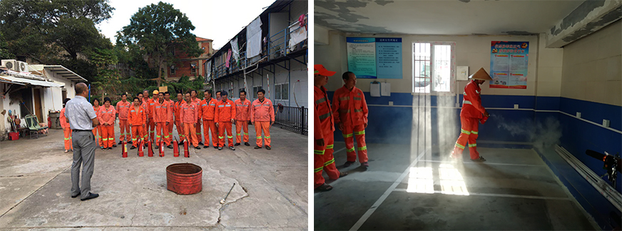 另外,公司還組織環(huán)衛所在道班房、宿舍開(kāi)展消防演練,學(xué)習滅火器的使用方法,強化員工防火意識,增強逃生、火災應對能力。