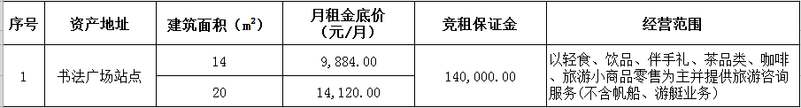 備注:意向承租人對上述情況應有充分了解。詳細招租規則、合同、承諾函、報價(jià)單等招租文件于報名參加時(shí)領(lǐng)取。