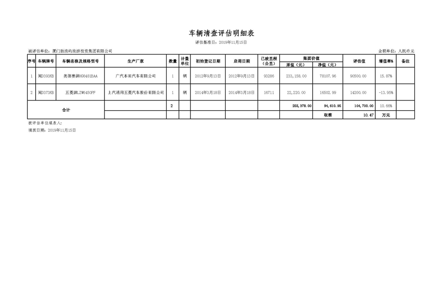4.《鼓浪嶼旅游集團車(chē)輛清查評估明細表》。