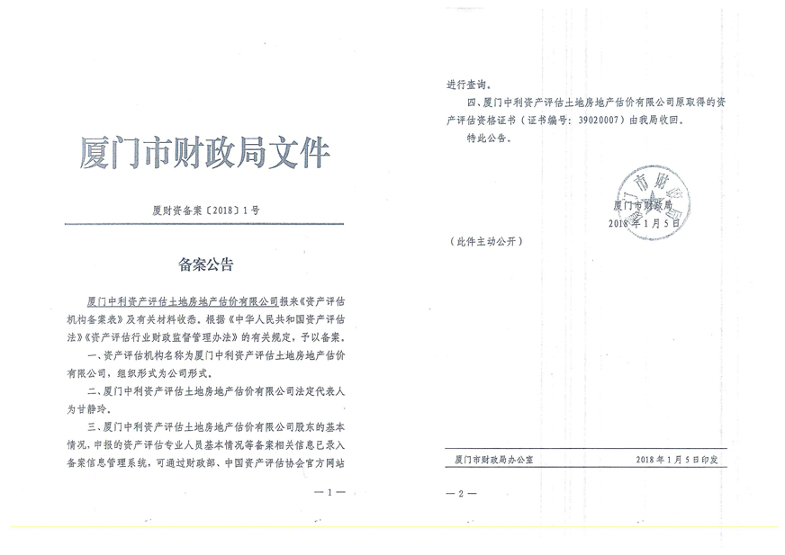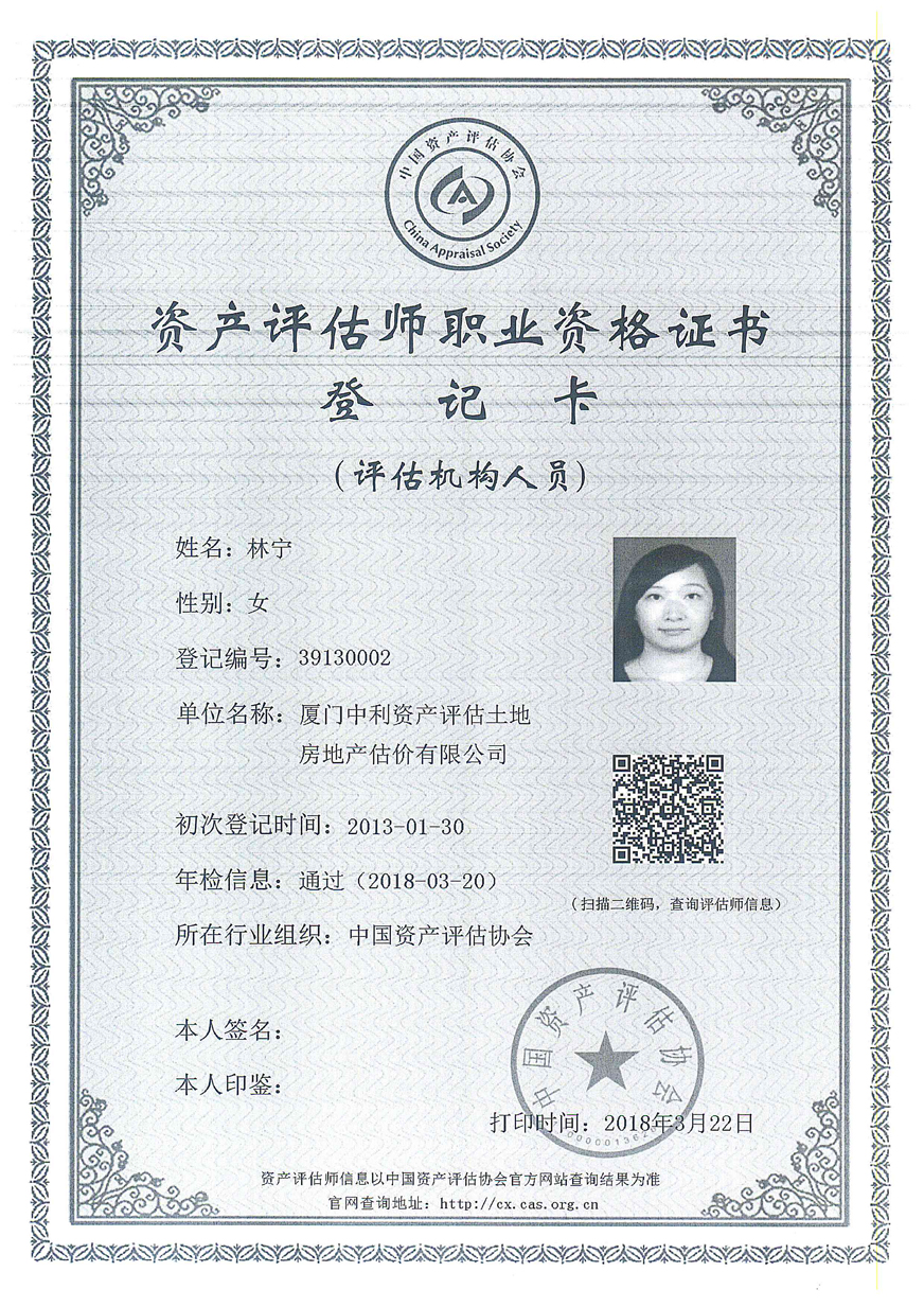 3. 廈門(mén)中利資產(chǎn)評估土地房地產(chǎn)估價(jià)有限公司營(yíng)業(yè)執照、評估資格證書(shū)復印件及注冊評估師林寧、鄭婷婷資質(zhì)證書(shū)復印件;