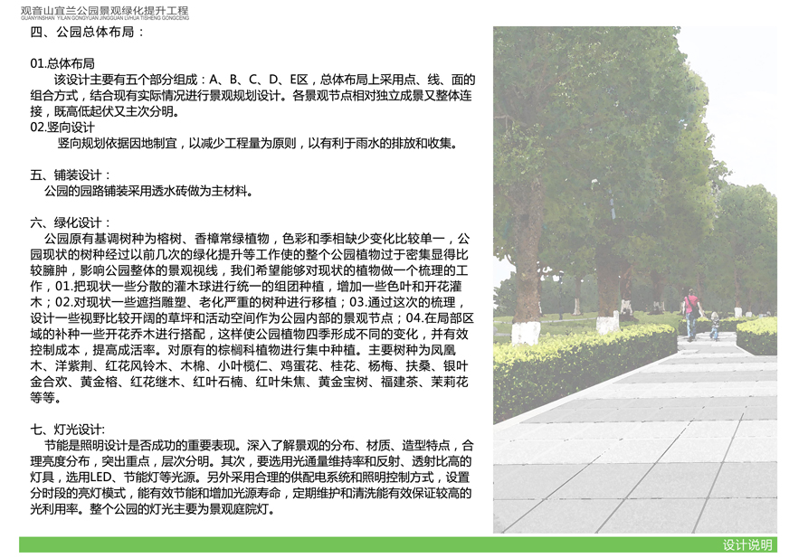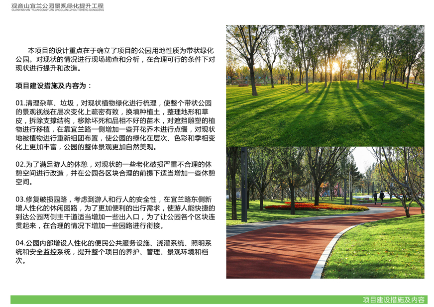 具體內容詳見(jiàn)附件:《觀(guān)音山宜蘭公園景觀(guān)綠化提升工程設計方案》