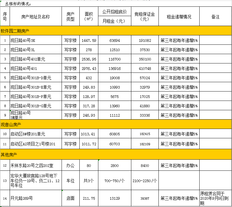 備注:意向承租人對上述情況應有充分了解。詳細招租規則、房屋租賃合同樣本、承諾函、報價(jià)單等招租文件于報名參加時(shí)領(lǐng)取。