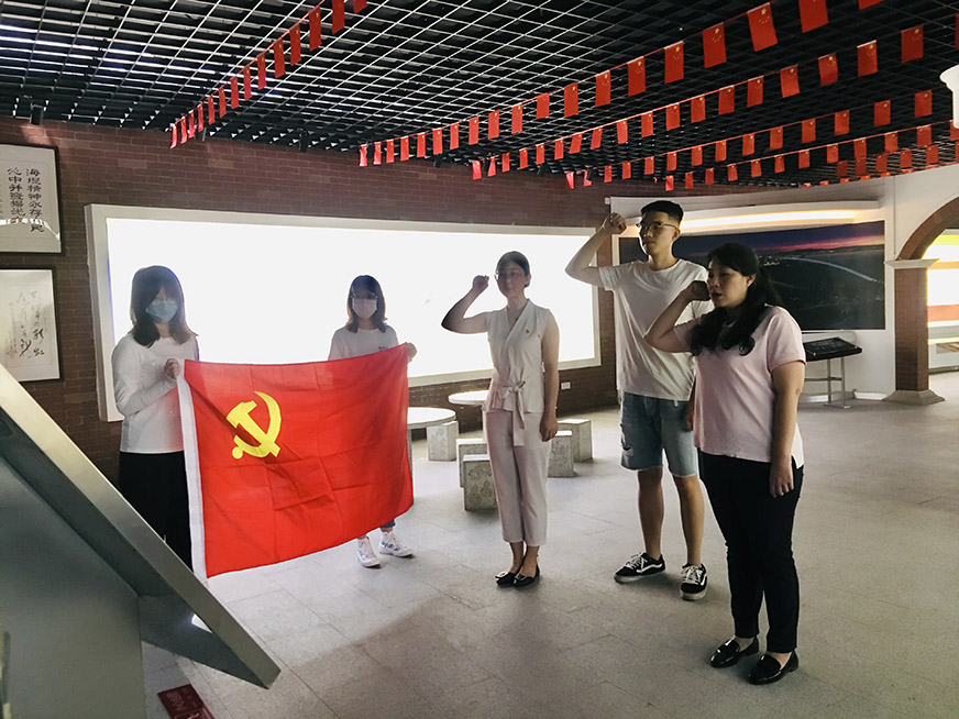 結束參觀(guān)后,全體黨員面對黨旗舉行莊嚴的重溫入黨誓詞儀式。黨員在海堤紀念館前,面對鮮艷的黨旗,重溫入黨誓詞,洪亮的宣誓讓黨員同志們重憶初心,加固信念堡壘。