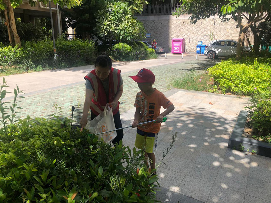 在志愿者的隊伍中,有幾個(gè)小小的身影,他們是志愿者們的子女,父母親身體力行為文明城市創(chuàng )建貢獻力量,孩子們也自告奮勇參與其中,實(shí)現了文明的薪火相傳。