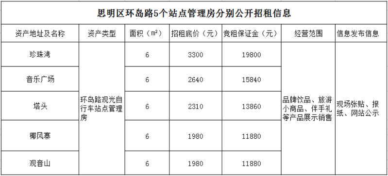 思明區環(huán)島路5個(gè)站點(diǎn)管理房分別公開(kāi)招租公告