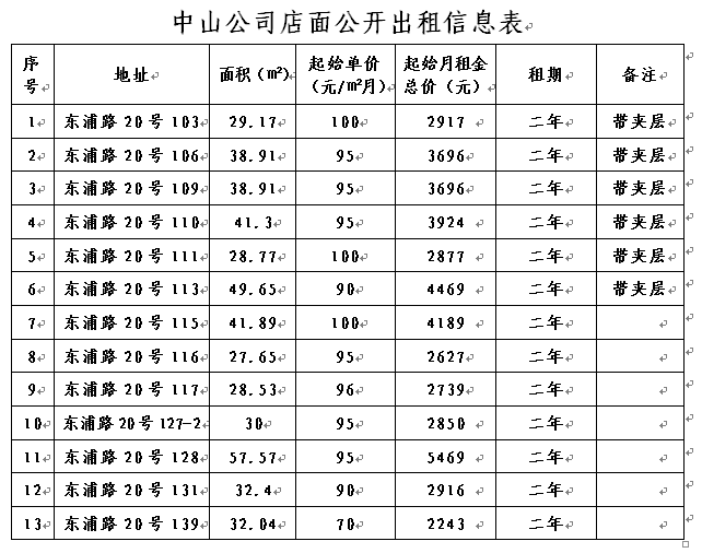 備注:意向承租人參加投標前應對以上店面招租情況有充分了解并可以實(shí)地踏勘。詳細招租規則、房屋租賃合同樣本、承諾函、報價(jià)單等招租文件可聯(lián)系招租人領(lǐng)取。