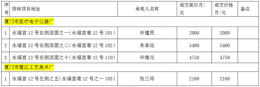 思明區區屬托管企業(yè)公開(kāi)招租成交公告