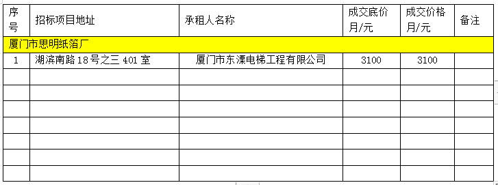 思明區區屬托管企業(yè)公開(kāi)招租成交公告