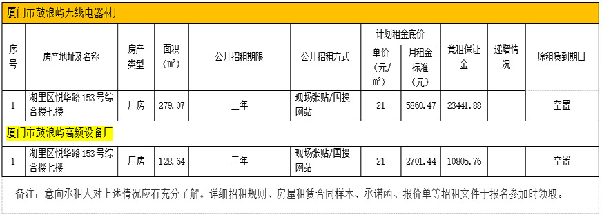 思明區屬托管企業(yè)擬出租房產(chǎn)招租情況