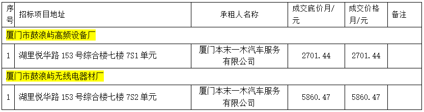 思明區區屬托管企業(yè)公開(kāi)招租成交公告