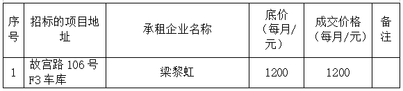 故宮路106號F3車(chē)庫房產(chǎn)招租成交公告