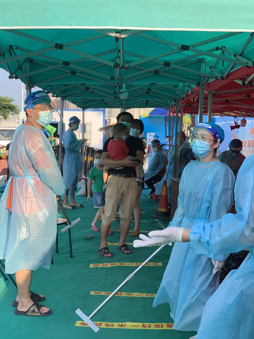 白色防護服、藍色隔離衣、普通便裝構成守護線(xiàn),與這酷暑、與這疫情搏斗。全民一心,用愛(ài)和擔當守護這座城。