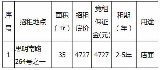 備注:意向承租人對上述情況應有充分了解。詳細招租規則、房屋租賃合同樣本、承諾函、報價(jià)單等招租文件于報名參加時(shí)領(lǐng)取。