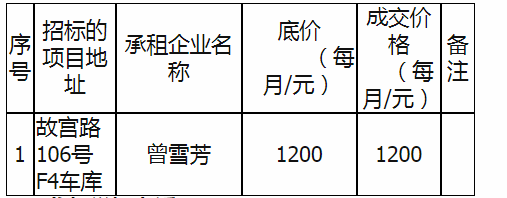 故宮路106號F4車(chē)庫房產(chǎn)招租成交公告