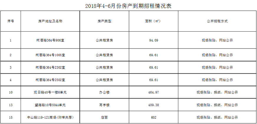 廈門(mén)市開(kāi)元國有投資集團有限公司房屋公開(kāi)招租信息