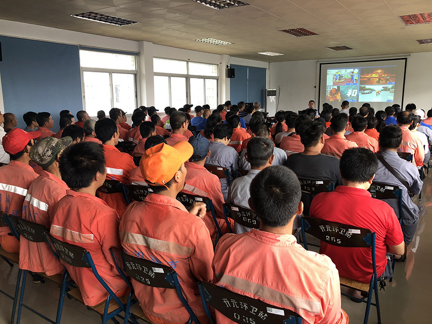 環(huán)衛工人作為城市的“美容師”,長(cháng)期在道路上作業(yè),身旁是絡(luò )繹不絕的機動(dòng)車(chē)、非機動(dòng)車(chē),作業(yè)危險系數高。而不少環(huán)衛工人安全意識薄弱。去年一年,思環(huán)公司就發(fā)生了數十起大大小小的交通安全事故。因此,提高環(huán)衛工人的交通安全意識刻不容緩。此次宣講專(zhuān)門(mén)面向一線(xiàn)保潔員、管理員。會(huì )上,宣講人王警官緊密結合環(huán)衛工作的性質(zhì)和特點(diǎn),從交通安全常識到日常路面環(huán)衛作業(yè)應該注意的事項,逐一進(jìn)行了深入淺出的講解。王警官還結合近期的交通事故案例,剖析因各種交通陋習、違法行為導致的危害和嚴重后果。