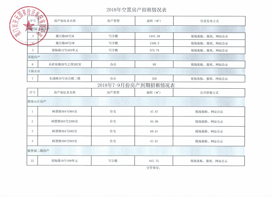 廈門(mén)市開(kāi)元國有投資集團有限公司房屋公開(kāi)招租信息