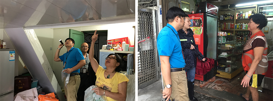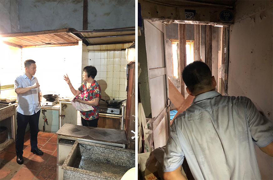 工作人員巡查危險房屋及慰問(wèn)住戶(hù)