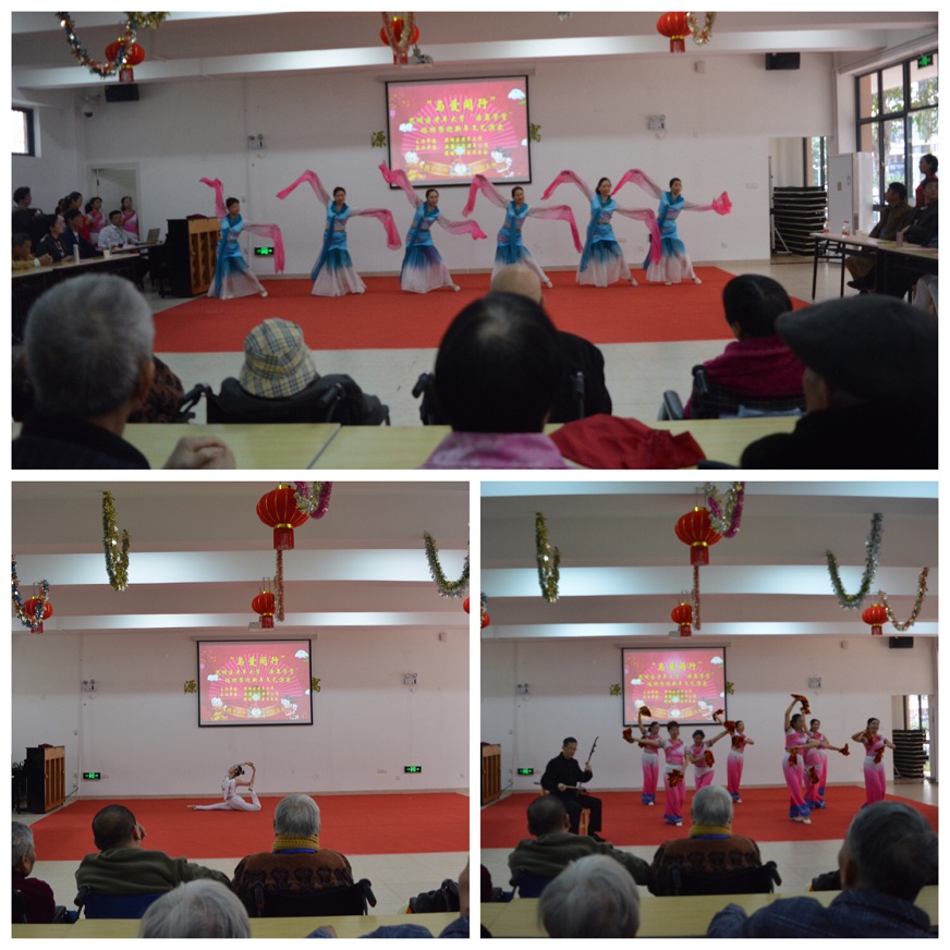 揭牌儀式結束后,思明區老年大學(xué)還為老年公寓長(cháng)者們帶來(lái)了一臺精彩的“與愛(ài)同行”的慰問(wèn)文藝演出,為揭牌儀式更增添了一縷喜慶光彩。先由思明區老年大學(xué)樂(lè )隊《器樂(lè )連奏》打頭陣,薩克斯、二胡共同演奏的旋律音色非常有特點(diǎn),歡快而又動(dòng)情的演奏感染著(zhù)現場(chǎng)觀(guān)眾;之后由思明區老年大學(xué)合唱隊男女聲二重唱《我愛(ài)你中華》、《小橋》,氣勢磅礴的氣勢,震撼全場(chǎng);六十余歲舞者表演的《舞韻瑜伽》,柔軟的身體優(yōu)雅地呈現各式高難度體形,使得在場(chǎng)的長(cháng)者們個(gè)個(gè)驚嘆不已,掌聲連連,一度將現場(chǎng)氣氛推至高潮,全場(chǎng)觀(guān)眾的熱情度在愉悅的氛圍中不斷升溫。