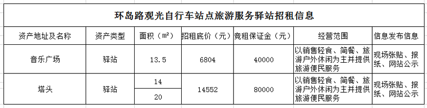 備注:意向承租人對上述情況應有充分了解。詳細招租規則、合同、承諾函、報價(jià)單等招租文件于報名參加時(shí)領(lǐng)取。