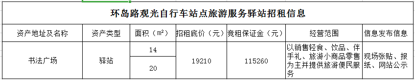 備注:意向承租人對上述情況應有充分了解。詳細招租規則、合同、承諾函、報價(jià)單等招租文件于報名參加時(shí)領(lǐng)取。